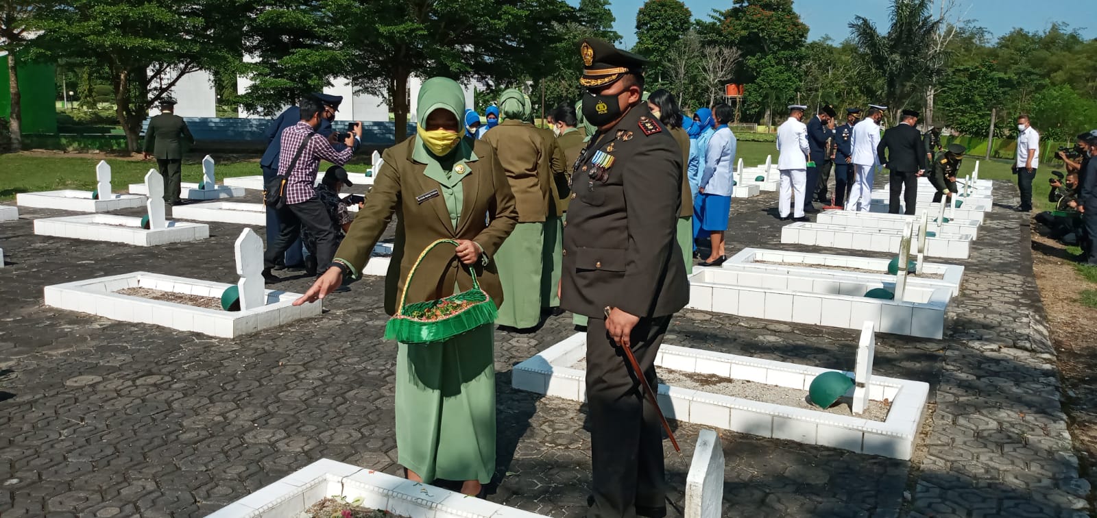 Komandan 0431/Bangka Barat Letkol Inf Agung Wahyu Perkasa, S.Sos melaksanakan Upacara Ziarah Nasional Peringatan HUT TNI ke – 76 tahun 2021, dampingi Ketua Persit KCK Cabang LV Kodim 0431/Bangka Barat Ny. Linda Agung Wahyu Perkasa, S.Sos, Bertempat di TMP Pawitralaya Jl. Raya Koba Km 6,5 Kelurahan Dul, Kecamatan Pangkalan Baru, Kabupaten Bangka Tengah Senin (4/10/2021)
