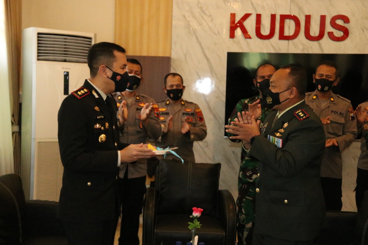 terabasnews.com. Kapolres Kudus AKBP Aditya Surya Dharma, S.I.K., bersama para pejabat utama mendatangi Kodim 0722/Kudus untuk memberikan ucapan selamat HUT TNI ke-76, Selasa (05/10/2021) pagi.