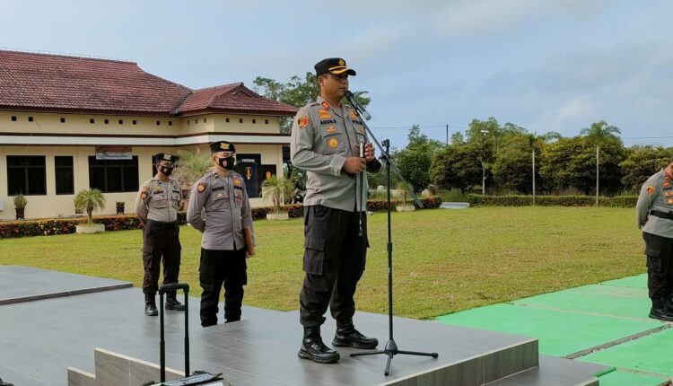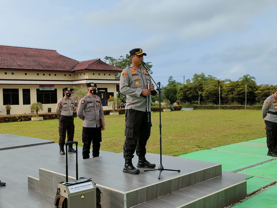 TerabasNews, Bangka Barat -Kapolres Bangka Barat AKBP Agus Siswanto S.H., S.I.K., M.H pimpin apel pagi jam Pimpinan di halaman Mapolres Bangka Barat, Senin (11/10/2021)