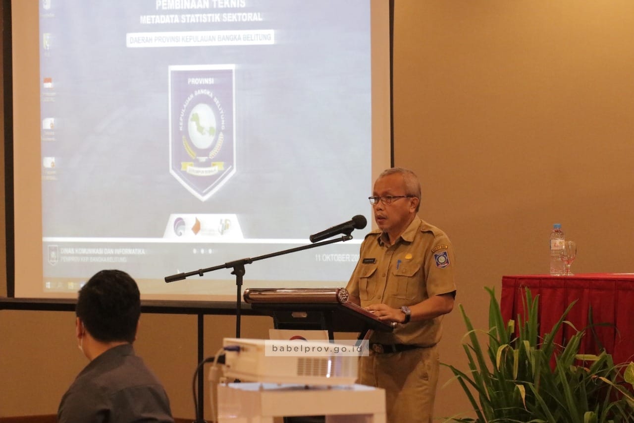TerabasNews, PANGKALPINANG – Kepala Dinas Komunikasi dan Informatika (Diskominfo) Provinsi Kepulauan Bangka Belitung (Babel), Sudarman, membuka Kegiatan Pembinaan Teknis Metadata dan Workshop Pengolahan Data Statistik Sektoral Daerah di lingkungan Pemprov. Babel, Senin (11/10/21), di Hotel Cordela, Pangkalpinang.