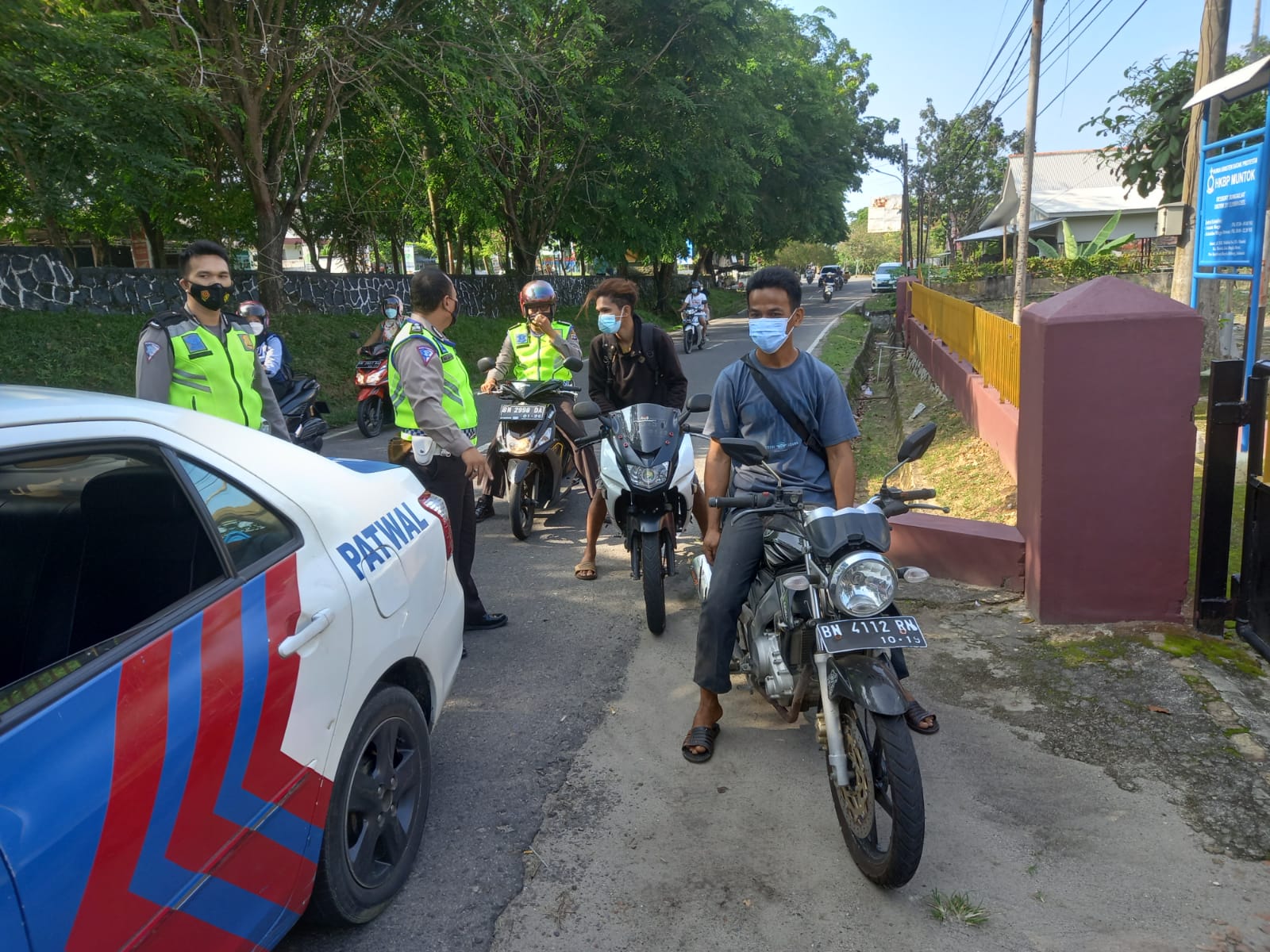Dalam kesempatan itu anggota Sat Lantas Polres Bangka Barat juga menghimbau pengguna jalan agar mematuhi protokol kesehatan terutama penggunaan masker