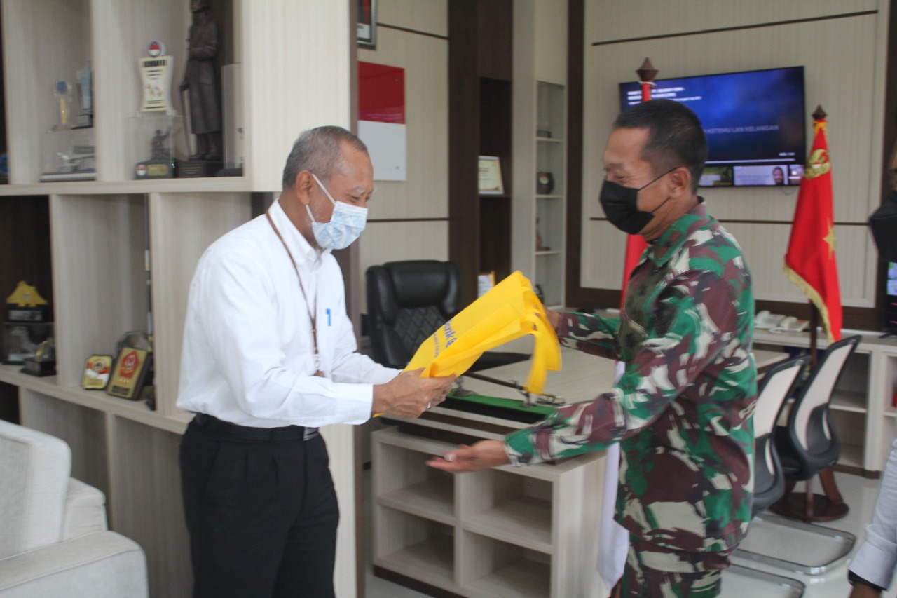 Acara audiensi yang berjalan dengan penuh keakraban dan tetap berpedoman pada protokol kesehatan tersebut diakhiri dengan penyerahan cenderamata dan sesi foto bersama.(RH. Penrem).