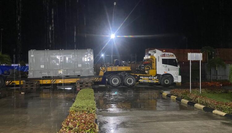 TerabasNews, Pangkalpinang (18/10) Komponen Mesin PLTMG dari Riau Sudah Tiba di Kompleks Pembangkitan Air Anyir Bangka pada Sabtu (16/10). Komponen tersebut akan menggantikan komponen sebelumnya yang sempat mengalami gangguan dan mengakibatkan pasokan listrik di Pulau Bangka terganggu.