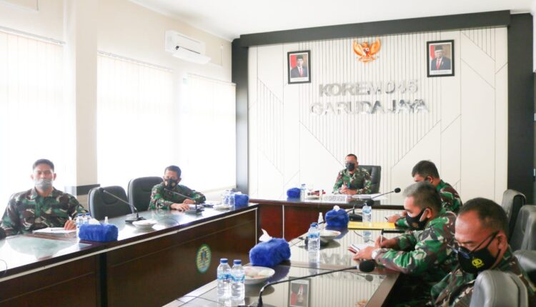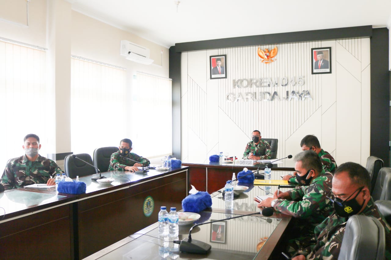 Korem 045/Gaya Ikuti Rapat Evaluasi Vaksinasi TNI