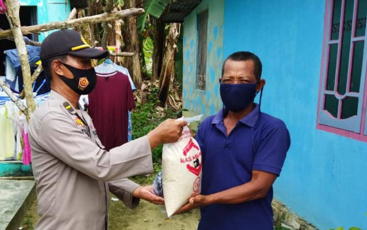 Sat Binmas Polres Bangka Barat Berikan 20 Paket Sembako Kepada Warga di Masa Pandemi Covid-19