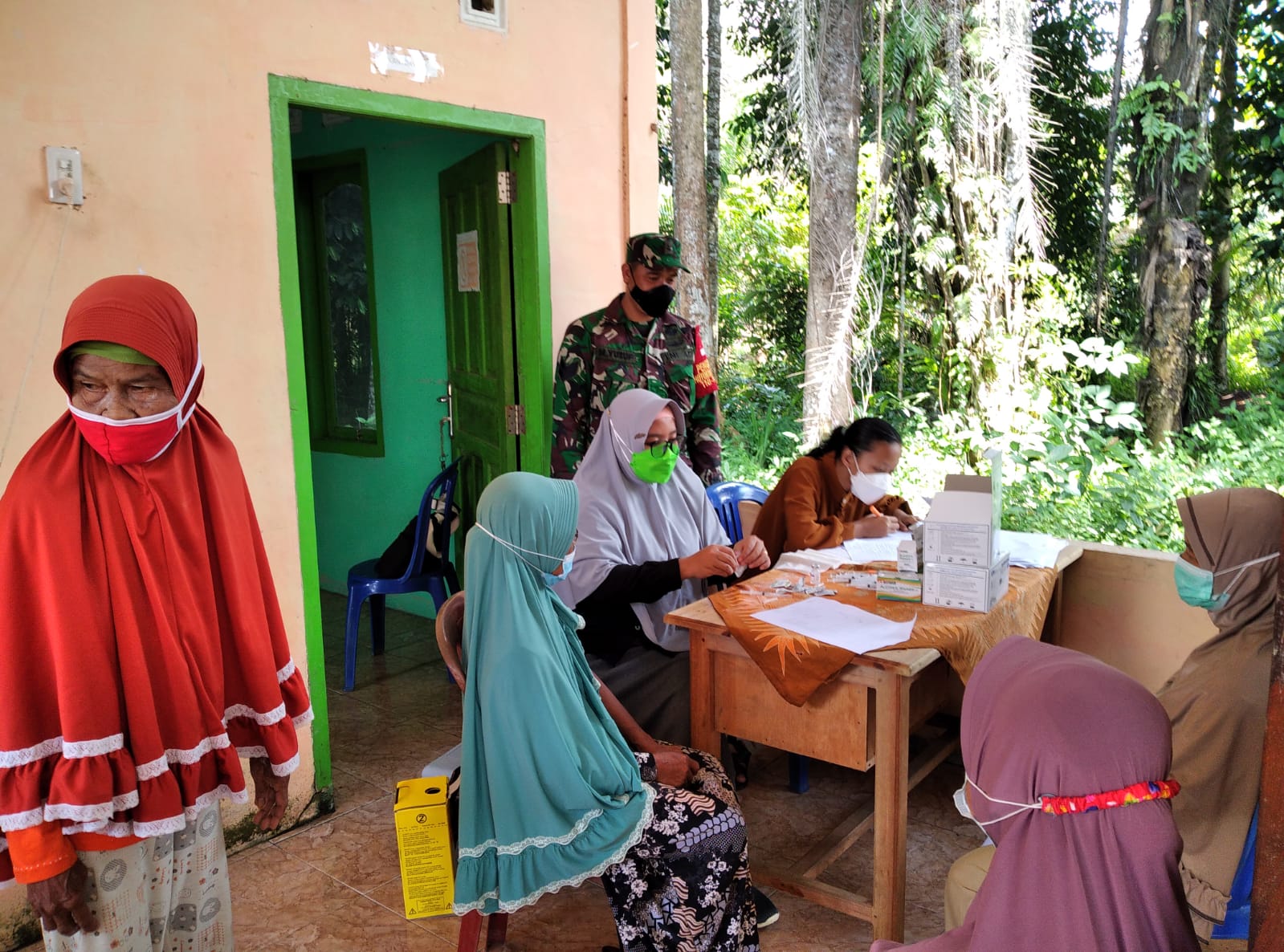 Babinsa Koramil 431-03/Kelapa monitor Vaksinasi di Desa Air Bulin Kec Kelapa