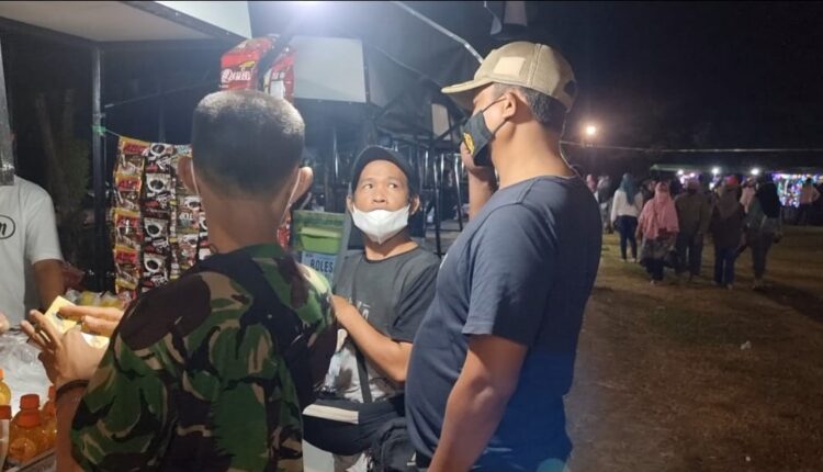 TerabasNews, Bangka Barat -Kapolres Bangka Barat, AKBP Agus Siswanto, SH.,S.IK., MH bagi-bagi voucher masyarakat yang melaksanakan vaksinasi di gerai vaksin Bazar yang digelar di Lapangan Gelora Muntok, Senin 25 Oktober 2021 malam