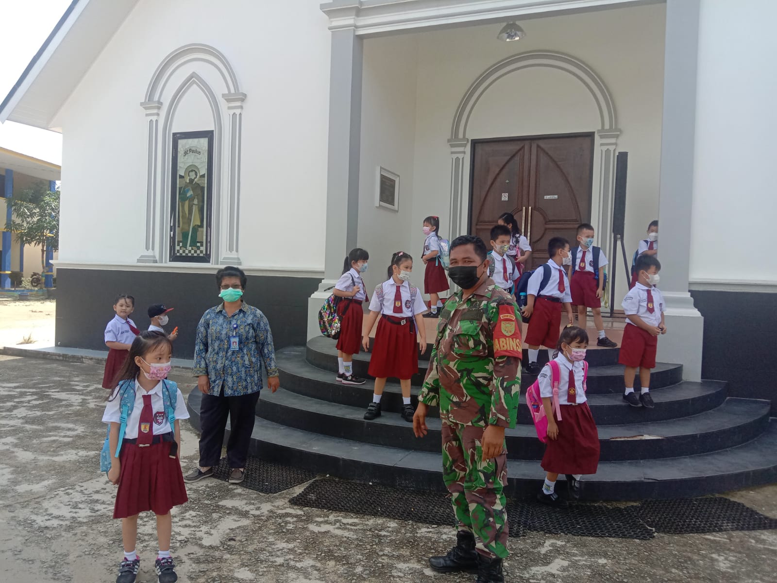 Babinsa Koramil 431-01/Jebus, Sertu Harun melaksanakan Komsos dengan para Guru di sekolah SD Higlarius bertempat di desa Puput, Kec. Parittiga, Babinsa menyampaikan kepada para Guru bahwa semua murid termasuk orang yang ada di lingkungan sekolah ini harus tetap menjaga prokes Covid-19, dengan cara memakai masker, mencuci tangan dan menjaga jarak, saat melaksanakan aktivitas belajar di ruang kelas. Rabu, (27/10/21)