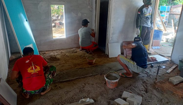 Hari ini Personil Kodim 0431/Bangka Barat pemasangan lantai keramik, memplester dinding luar