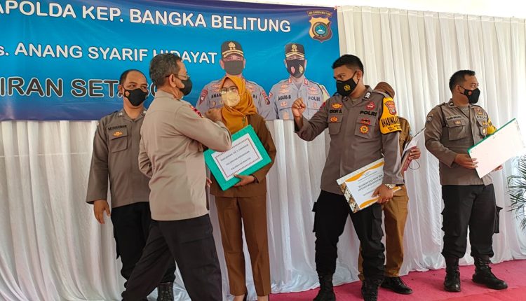 Penyerahan Reward Dari Kapolda Babel Bagi Desa Di Kabupaten Bangka Barat Yang Warganya 100 Persen Vaksinasi, Gertasi Dan Covernment Mobile