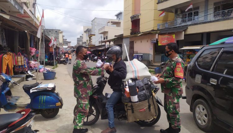 Bertepatan Hari Pahlawan, Babinsa Koramil 431-01/Jebus Bagikan Masker Gratis dan Himbauan Prokes COVID-19