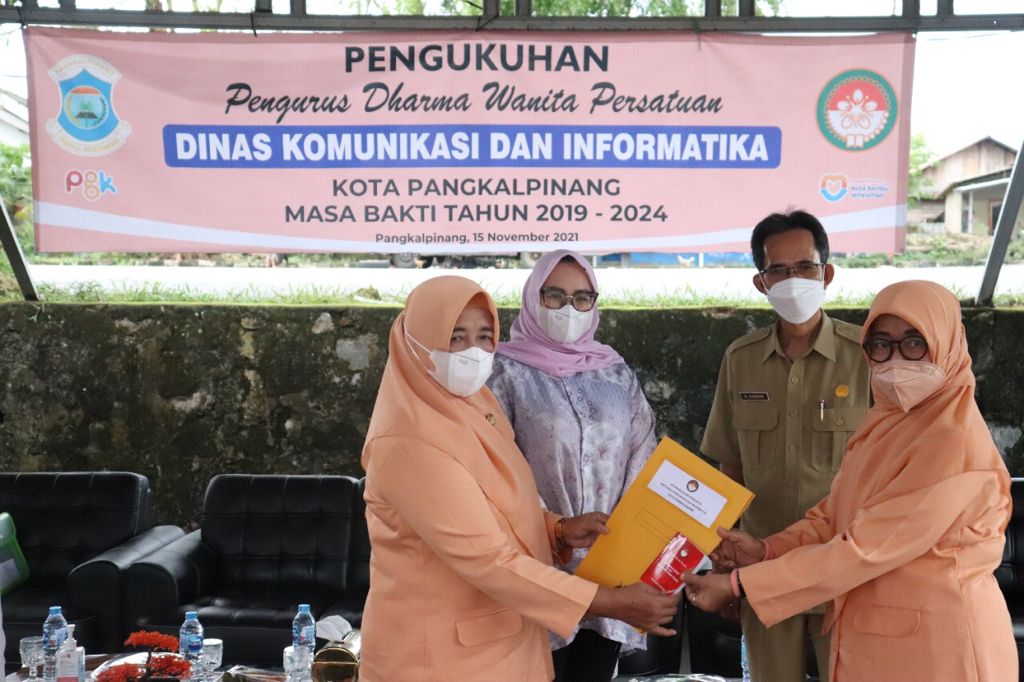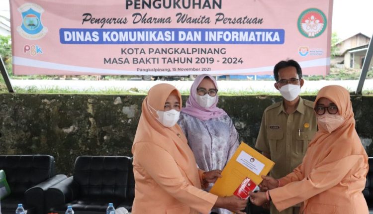 TerabasNews, PANGKALPINANG, – Ketua Dharma Wanita Persatuan (DWP) Kota Pangkalpinang, Eko Wahyuni Suryo mengukuhkan pengurus DWP Dinas Komunikasi dan Informatika Kota Pangkalpinang masa bakti 2019-2024, Senin (15/11/2021).