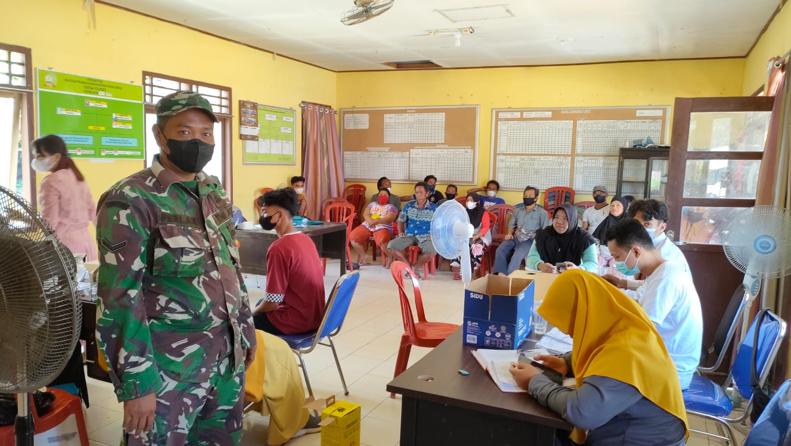 Babinsa Koramil 431-01/Jebus, Sertu Feri Arianto melaksanakan Vaksinasi di Puskemas Puput Kec. Parittiga bertempat di Desa Cupat sekaligus mengajak Warga agar datang ke gerai Vaksin untuk melaksanakan Vaksin, dan menghimbau Maasyarakat untuk selalu mematuhi Prokes. Senin, (22/11/21)