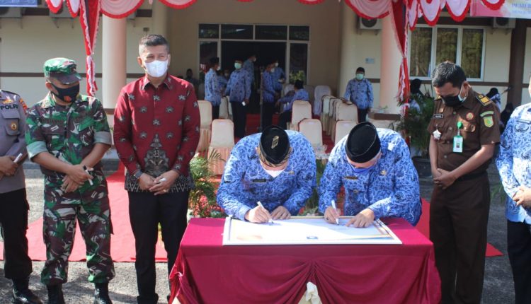 TerabasNews, Muntok Bangka Barat– Pasi Ops Kodim 0431/Babar Lettu Inf Aflianto Menghadiri Acara Pencanangan Pembangunan Zona Integritas Pada Pemerintah Kabupaten Babar Menuju Wilayah Bebas dari Korupsi (WBK)dan Wilayah Birokrasi Bersih dan Melayani (WBBM), Kegiatan penandatangan dilaksanakan setelah Upacara HUT KORPRI KE 50 dan HUT PGRI yan KE 56 Tahun 2021, Bertempat di Halaman Kantor Bupati Bangka Barat Senin (29/11-2021)