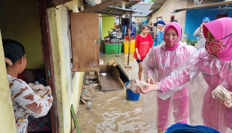 Kapolres Bangka Barat Dan Bhayangkari Bagikan Nasi Bungkus Kepada Korban Banjir