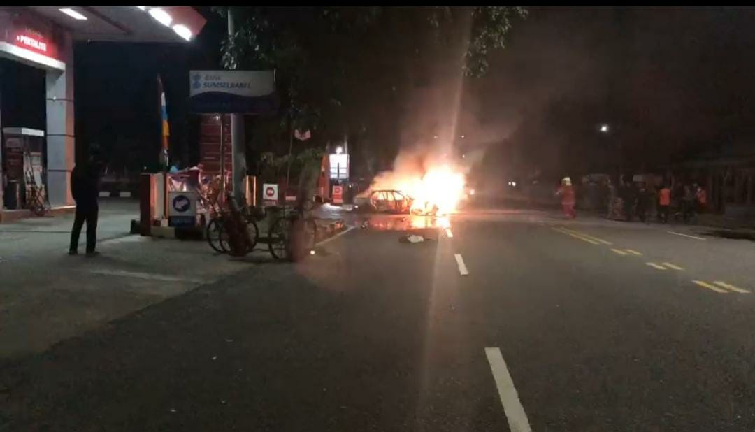 “Disaat mau keluar dari SPBU ada api di bawah mobilnya, langsung menyambar keatas dan api langsunh besar, “ujar Yudi.