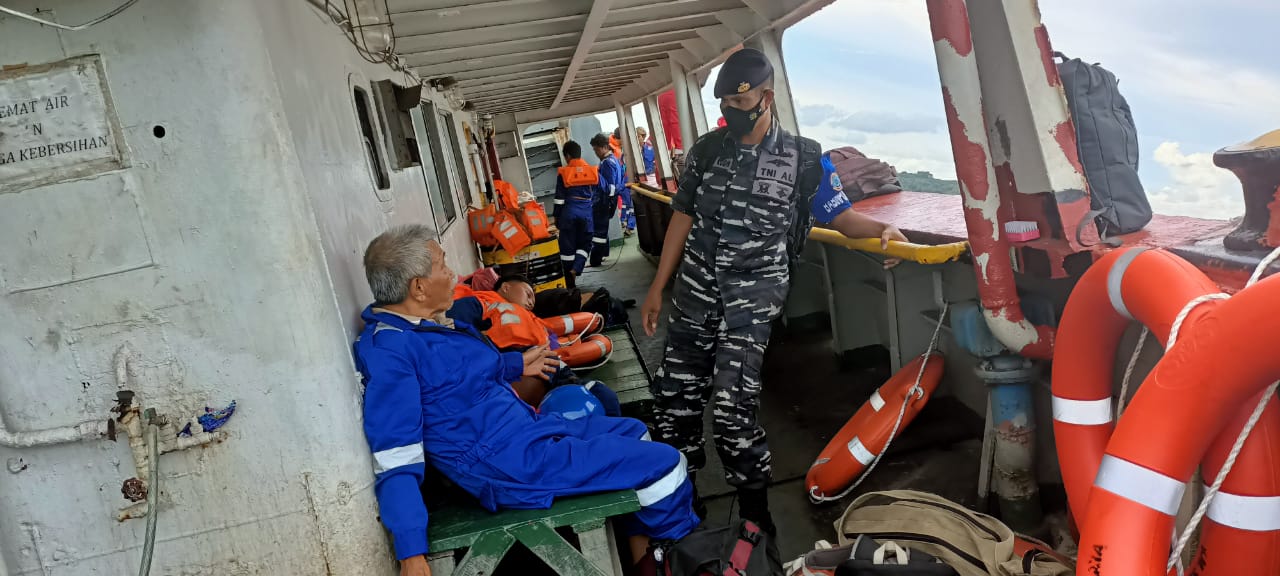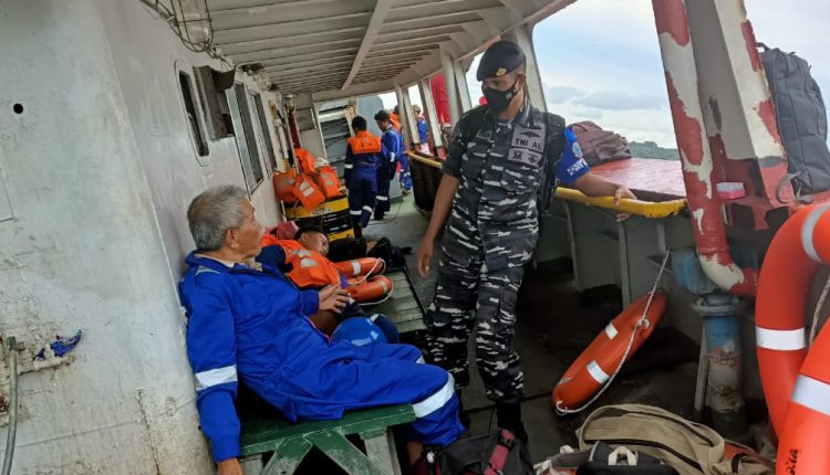 Posmat TNI AL Lakukan Pengawasan di KM Sriwijaya Raya yang Kandas Akibat Kebocoran