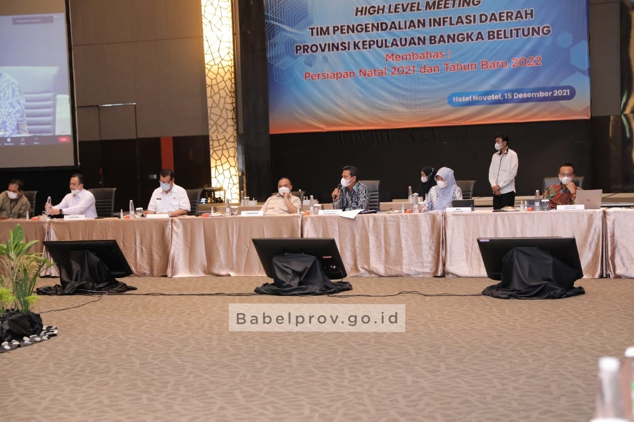 Arahan itu disampaikan Gubernur Babel Erzaldi Rosman dalam kegiatan High Level Meeting Tim Pengendalian Inflasi Daerah (TPID) Provinsi Kepulauan Bangka Belitung Tahun 2021, dalam rangka Persiapan Natal 2021 dan Tahun Baru 2022 (Nataru), serta Antisipasi dan Mitigasi Inflasi bertempat di Hotel Novotel, Pangkalan Baru, Kabupaten Bangka Tengah, Rabu (15/12/21).