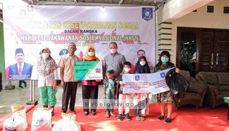 Adapun bantuan yang diberikan berupa bantuan dana hibah dari Pemprov Babel untuk anak yatim piatu dan masyarakat yang membutuhkan, bantuan dari BPJS Ketenagakerjaan kepada Pekerja Sosial Masyarakat (PSM), penerima program keluarga harapan, serta pekerja informal, bantuan sembako yang bersumber dari CSR perusahaan, serta alat tulis dan tas sekolah dari mitra Kemensos RI.