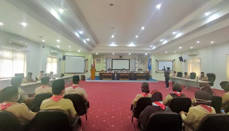 TerabasNews, PANGKALPINANG – Wali Kota Pangkalpinang, Maulan Aklil didampingi Ketua Kwartir Cabang (Kwarcab) Pangkalpinang Monica Haprinda menghadiri pertemuan Majelis Pembimbing Gugus Depan/Kepala Sekolah se-Kwarcab di Ruang OR Kantor Wali Kota Pangkalpinang, Jumat (17/12/2021).