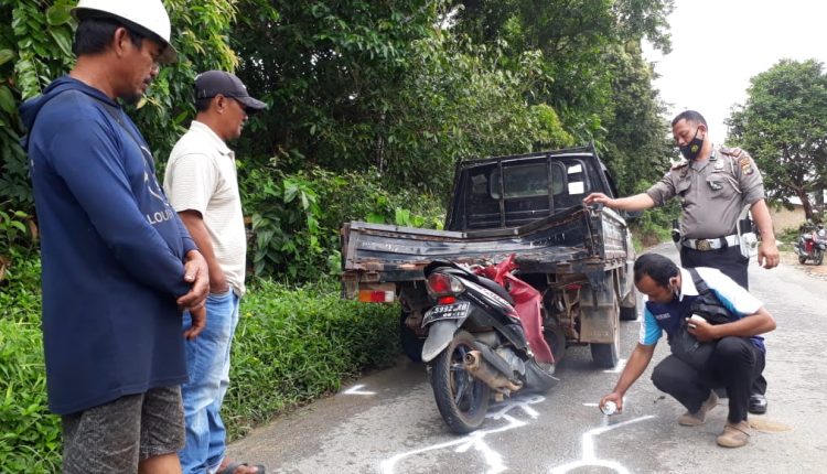 Kecelakaan melibatkan Mobil Toyota Kijang Pick up warna Hitam dengan Sepeda Motor Yamaha Mio J warna Putih, Kecelakaan Lalu Lintas Bermula Pada Saat Mobil Toyota Kijang Pick up yang di Kemudikan LH melintas dari Arah Desa Cupat menuju arah Parittiga kemudian mobil yang di kemudikan LH kehabisan BBM dan berhenti di jalur jalan sebelah kiri