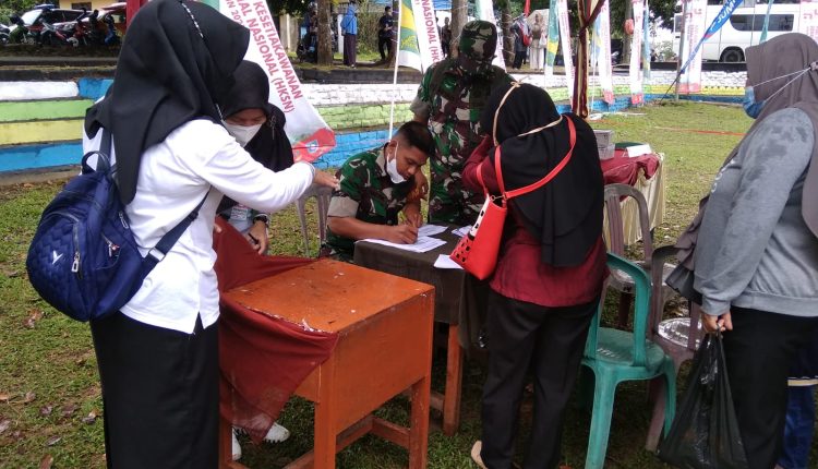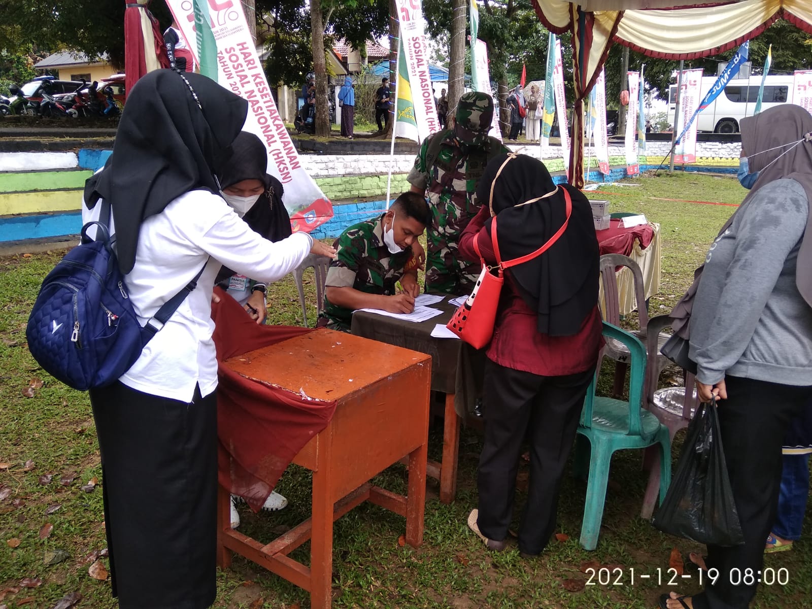 Sambut Menteri Sosial, anggota Koramil 431-02/Muntok, dan Anggota Kodim 0431/Bangka Barat gelar Vaksinasi di lapangan Gelora Muntok