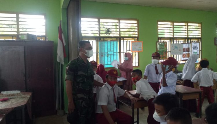 Dampingi Vaksinasi terhadap Siswa SD, Babinsa Koramil 431-01/Jebus berikan rasa aman dan nyaman
