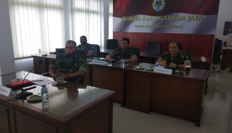 Dan Unit Inteldim 0431/Babar Letda Inf Zulkifli mengikuti kegiatan Vicon Evaluasi Progjagar Bidang Intel Pam Semester II th 2021 bertempat di Ruang Puskodal OPS Korem 045/Gaya, Vicon di Pimpin Waasintel Kasdam II/ Sriwijaya tempat Gedung Sudirman Kodam II/Swj Palembang. Selasa, (21/12/21)