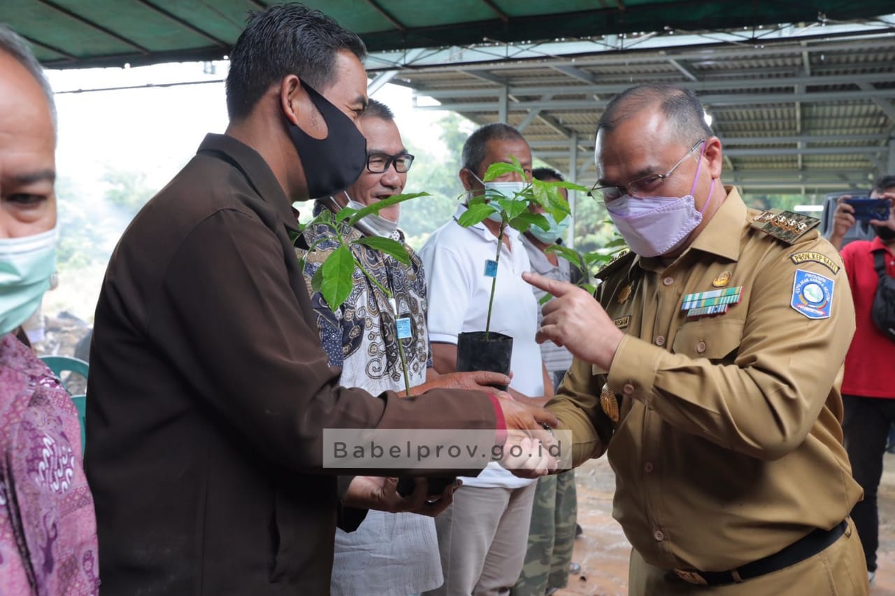 TerabasNews, MERAWANG – Gubernur Kepulauan Bangka Belitung (Babel), Erzaldi menyerahkan bantuan 1.000 batang bibit tanaman Alpukat Roro untuk masyarakat Kabupaten Bangka, Selasa (21/12). Bantuan itu sendiri merupakan hasil kolaborasi Pemerintah Provinsi Kepulauan Bangka Belitung (Pemprov. Babel) dengan pemilik pembibitan Sen’s Tani, Asen Salim.