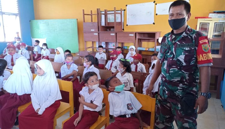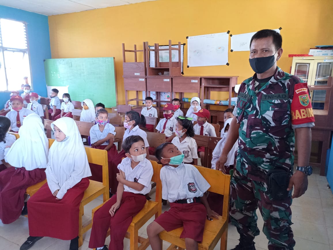 Babinsa Koramil 431-03/Kelapa monitoring Vaksinasi terhadap Siswa-Siswi SDN 11 Desa Kacung