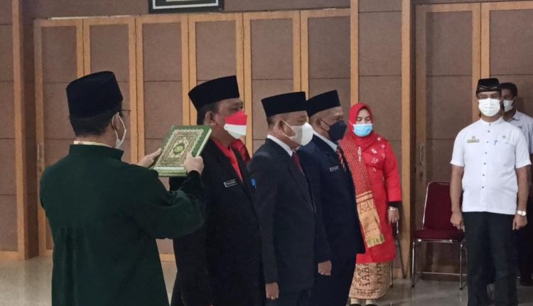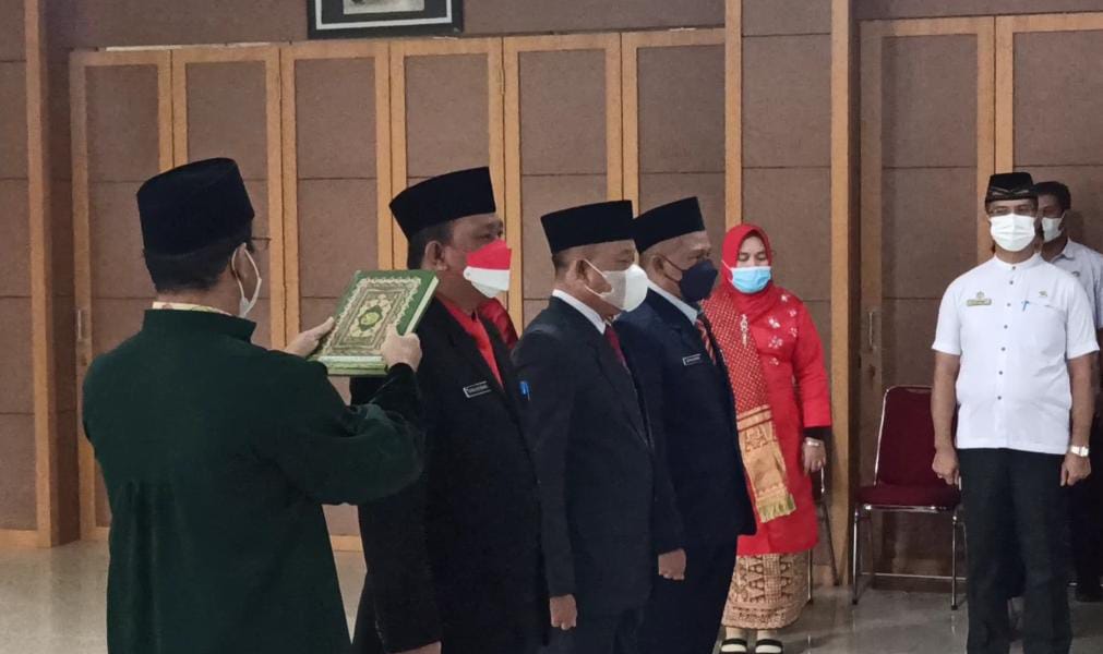 TerabasNews, Toboali – Bupati Bangka Selatan, Riza Herdavid melantik dan mengambil sumpah janji jabatan kepada tiga pimpinan tinggi pratama eselon II di lingkungan pemerintah Kabupaten Bangka Selatan, Rabu (22/12/2021) hall lantai 2 Kantor Bupati Bangka Selatan.