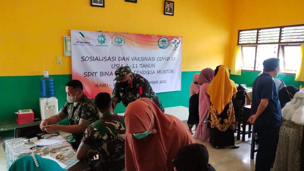 Komandan Kodim 0431/Bangka Barat Letkol Inf Agung Wahyu Perkasa, S.Sos disela kegiatan pada kesempatanya mengatakan”. Hari ini Kodim 0431/ Bangka Barat menggelar Gerai Kegiatan Sosilisasi dan Vaksinasi Covid-19 Usia 6-11 Tahun di SDIT Bina Insan Cendikia Muntok di ikuti oleh 132 anak Usia 6-11 Tahun”.