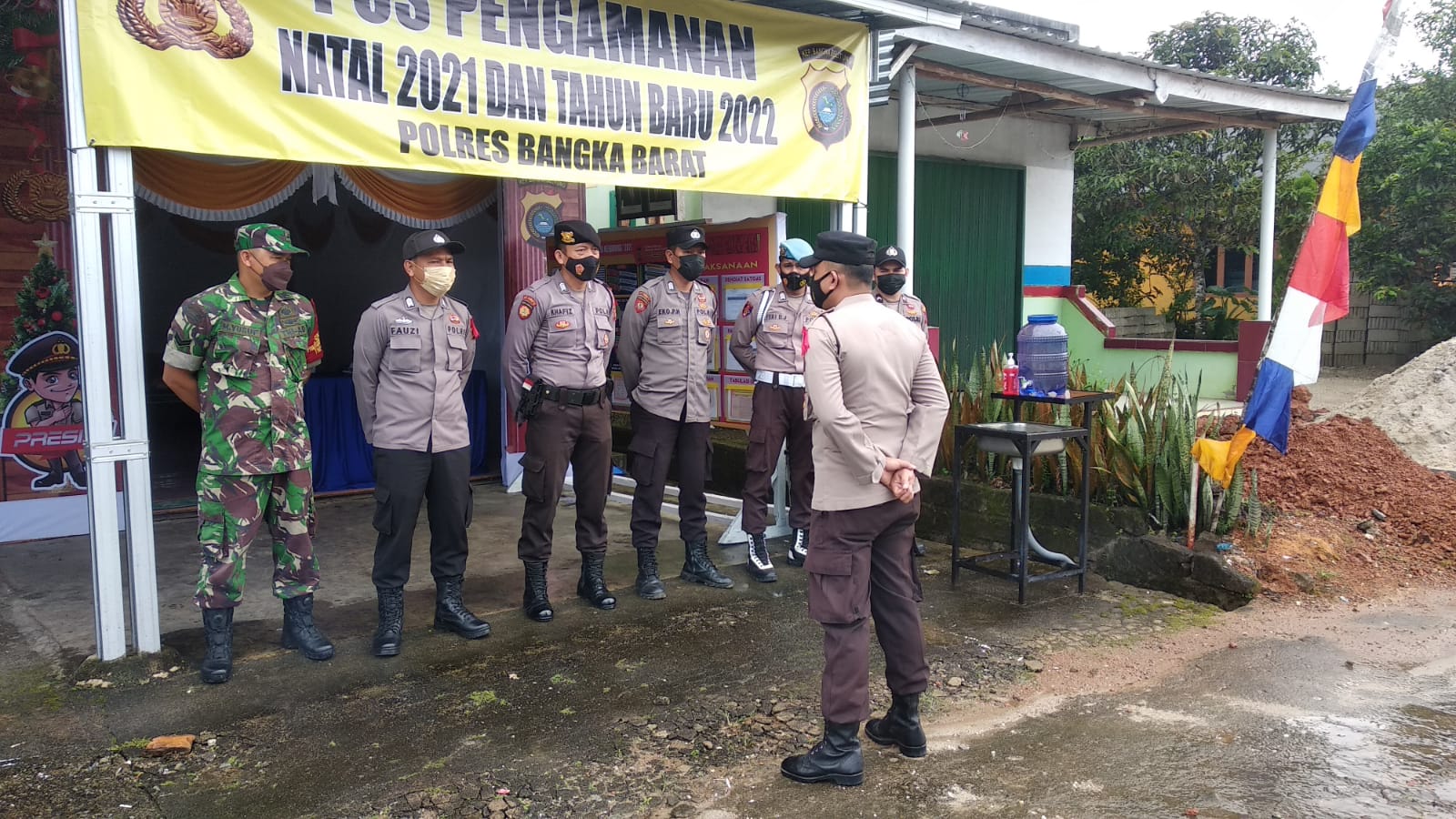 Babinsa Koramil 431-03/Kelapa, Sertu M.Yusuf melaksanakan Apel dan Pengamanan bersama dengan anggota polsek kelapa ,dalam rangka pengamanan Natal dan tahun baru di pos pengamanan wilayah Kelapa. Minggu, (26/12/21)