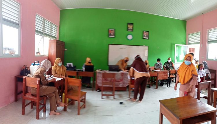Babinsa Koramil 431-01/Jebus Serda Romsan melaksanakan kegiatan pendampingan Vaksinasi bertempat di SDN 14 Jebus bertempat di Desa Tumbak Petar Kec. Jebus Tim Nakes Puskesmas Jebus Kec. Parittiga dengan menggunakan Vaksin TNI dan dimasukan ke Pcare Kodim 0431/Babar. Selasa (28/12/21)