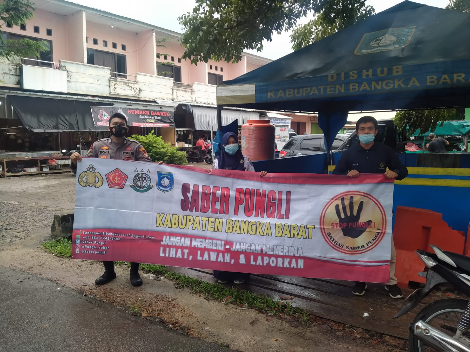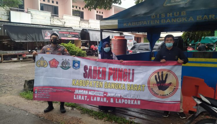 TerabasNews, Sejumlah personel Polres Bangka Barat, menggelar sosialisasi sapu bersih pungutan liar (Saber Pungli) kepada petugas Dishub yang berada di area pasar Muntok kel.tanjung kec. Muntok Kab Bangka Barat. Rabu 29 Desember 2021