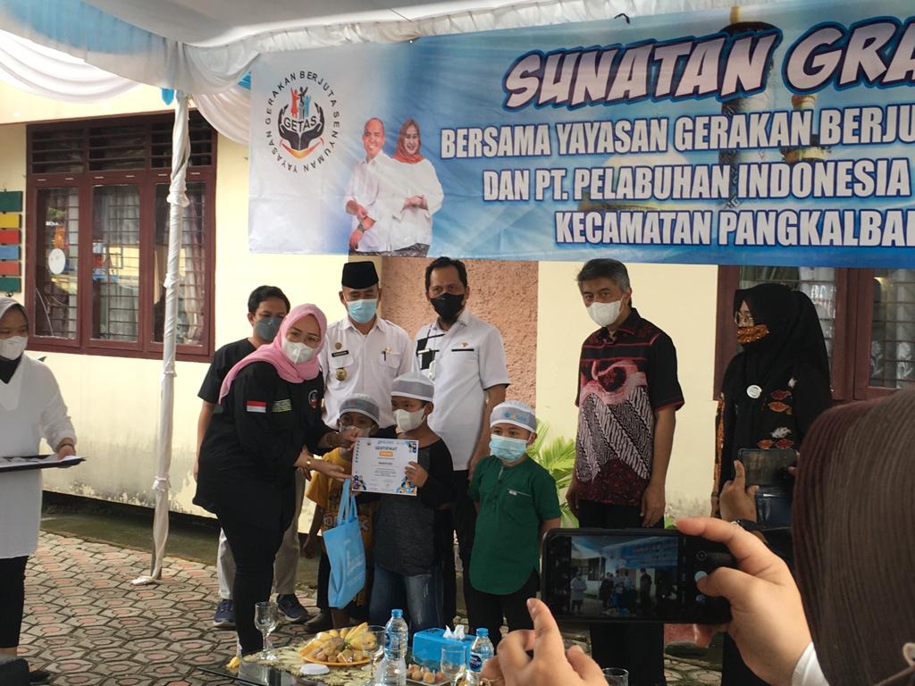 TerabasNews, PANGKALPINANG, – Ketua Tim Penggerak Pemberdayaan Kesejahteraan Keluarga (TP PKK) Kota Pangkalpinang, Monica Haprinda menghadiri Sunatan Gratis bersama Yayasan Gerakan Berjuta Senyuman dan PT. Pelabuhan Indonesia (Persero) di Aula Kantor Kecamatan Pangkalbalam, Rabu (29/12/2021).