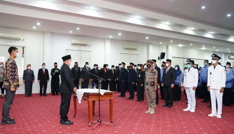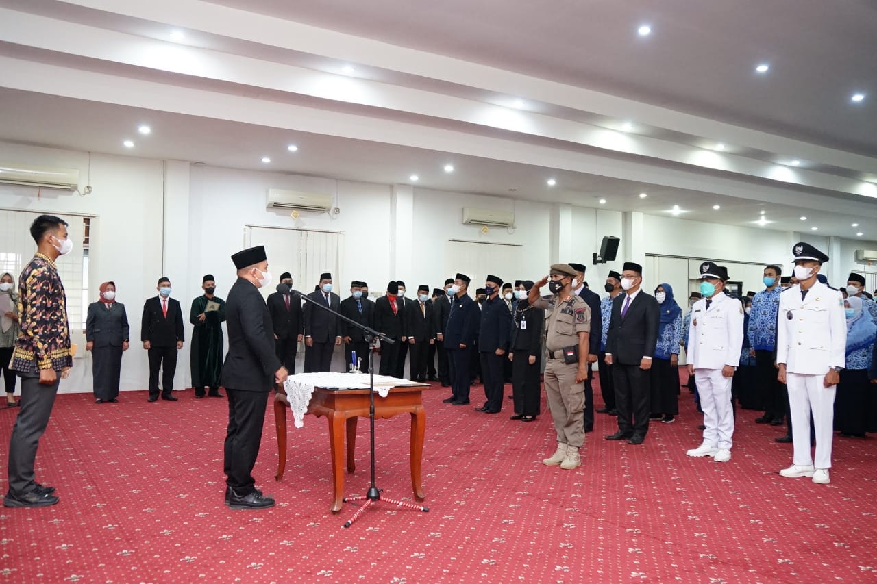 TerabasNews, PANGKALPINANG, – Pemerintah kota Pangkalpinang melaksanakan pelantikan dan pengambilan sumpah janji jabatan pejabat pimpinan tinggi pratama, pejabat administrasi dan pejabat fungsional melalui mekanisme penyetaraan jabatan lingkungan pemerintah kota Pangkalpinang, Jumat (31/12/2021) di Ruang OR Kantor Walikota.