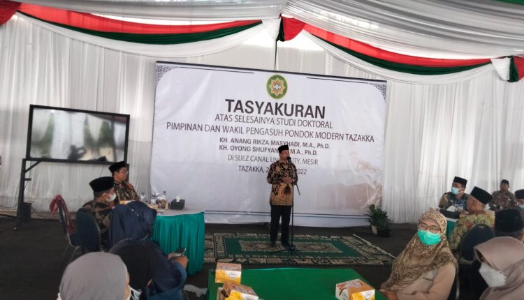 H. Anta Masyhadi selaku tuan rumah dan Ketua Yayasan Tazakka mengucapkan terima kasih atas kehadiran para undangan. Beliau menyatakan bahwa kesyukuran ini bukan lagi milik individu atau keluarga, akan tetapi menjadi kesyukuran umat, bahwa tokoh-tokoh muda dapat menimba ilmu tinggi semoga dapat dimanfaatkan semaksimal mungkin oleh umat, khususnya didunia pesantren,”tuturnya”.