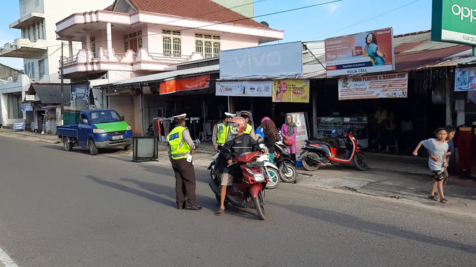 “Hari ini ada beberapa pengendara yang melanggar seperti tidak menggunakan helm dan anak di bawah umur yang kami tilang. Untuk kendaraan yang kita tilang ini sebanyak 37 kendaraan yang terdiri dari 35 motor dan 2 mobil bak mengangkut penumpang,” jelasnya.