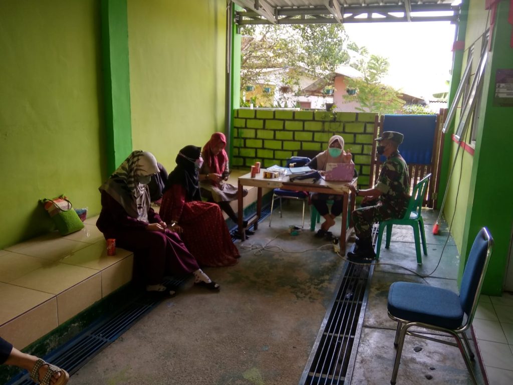 Anggota Koramil 431-02/Muntok dan anggota kesehatan Kodim 0431/Bangka Barat melaksanakan Vaksin terhadap Masyarakat yang belum Vaksin