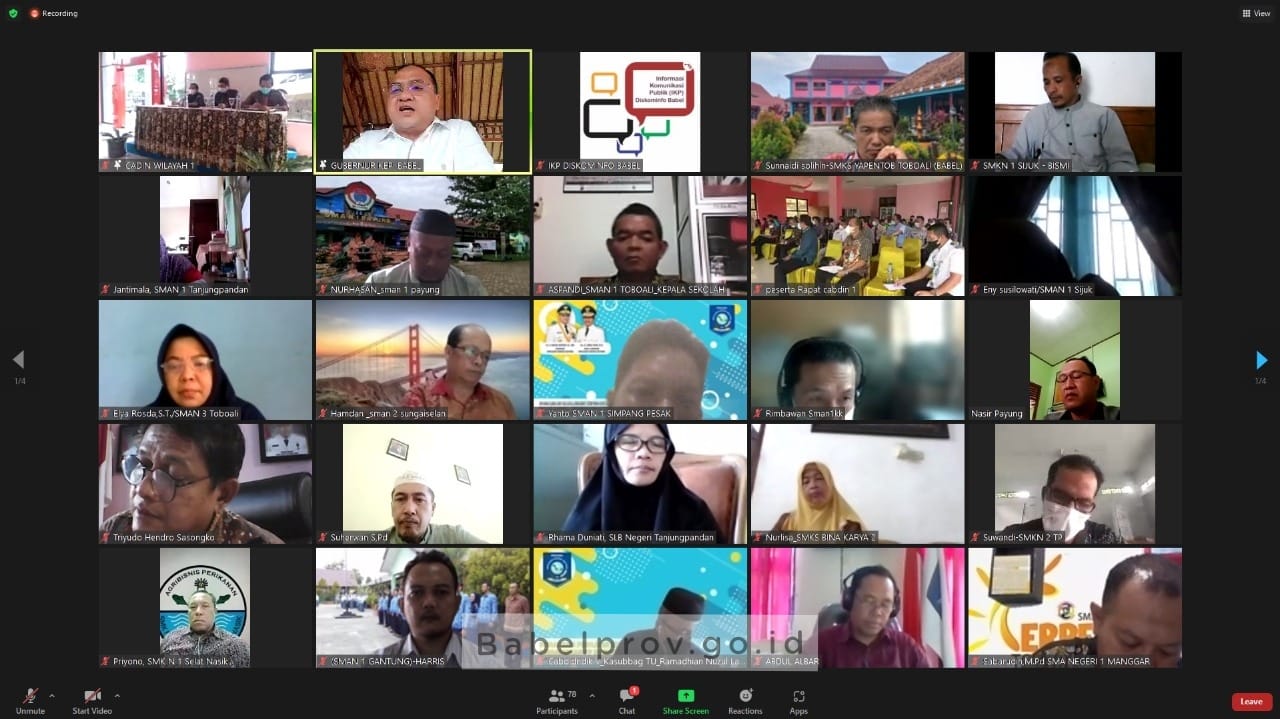 Hal tersebut disampaikan Gubernur Erzaldi secara virtual pada rapat Persiapan Pembelajaran Tatap Muka Tingkat SMA/SMK/SLB se-Provinsi Kepulauan Bangka Belitung Semester Genap Tahun Pelajaran 2021/2022 di SMA Negeri 3 Pangkalpinang, Jumat (7/01/22).