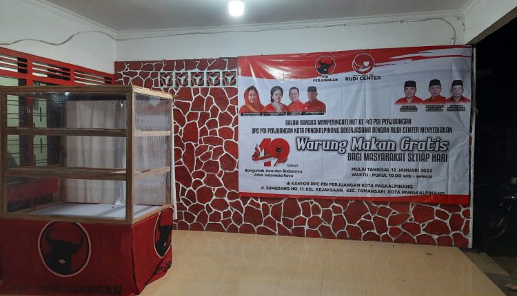 TerabasNews, PANGKALPINANG — DPC PDI Perjuangan (PDI-P) Kota Pangkalpinang bekerja sama dengan Yayasan Rudi Center kembali menggelar program Warung Makan Gratis. Melalui program ini, masyarakat khususnya kalangan tidak mampu bisa memperoleh makanan siap saji secara gratis.