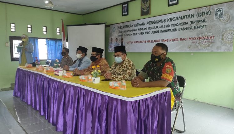 Babinsa Koramil 431-01/Jebus Sertu Feri Arianto, menghadiri undangan pelantikan Dewan Pengurus Kecamatan (DPK) di Wilayah Kecamatan BKPRMI Kabupaten Bangka Barat tahun 2021 s.d 2024. Sabtu, (15/01/2022)
