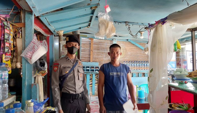 Personel Sat Samapta Polres Bangka Barat memberikan arahan kepada warga agar senantiasa mematuhi protocol kesehatan serta menjaga kebersihan diri dan lingkungannya.