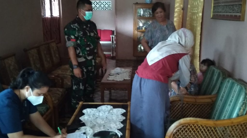 TerabasNews, Muntok, Bangka Barat – Sertu Tamin Babinsa Koramil 431-02/Muntok, Praka Azwar anggota kesehatan Kodim 0431/Babar bersama tim nakes Puskesmas Muntok, Bhabinkamtibmas dan perangkat kelurahan Sungai daeng melaksanakan giat vaksinasi mobile di wilayah Kel Sungai daeng Rt/Rw 002/002 Kp Warga mulya,Rt/Rw 001/001. Rabu, (19/01/2022).