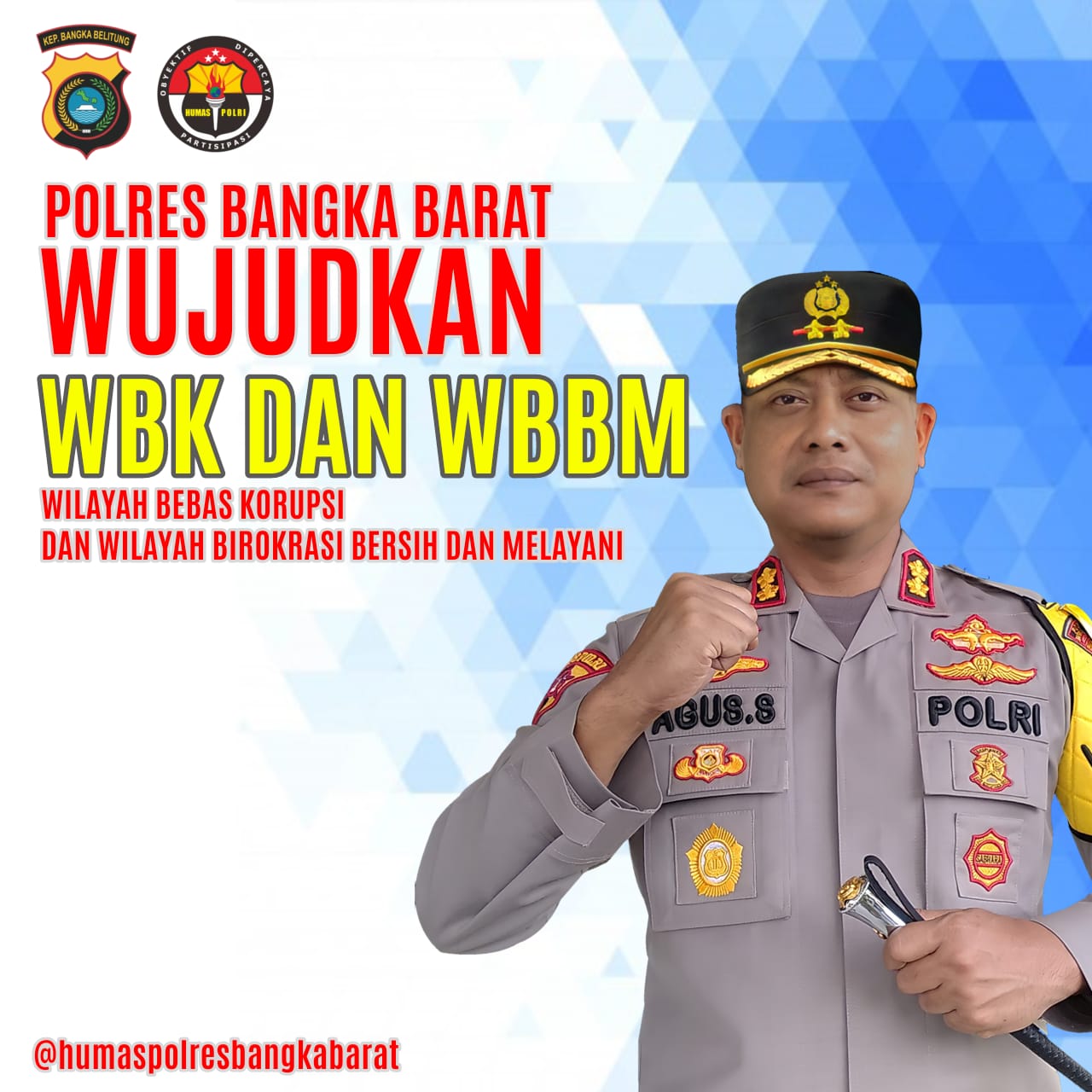 Tambah Kapolres Oleh karena hal tersebut, Polres Bangka Barat beserta jajaran guna meningkatkan pelayanan publik yang ada, berusaha untuk membangun suatu zona yang disebut dengan Zona Integritas (ZI) yang dimana didalamnya diharapkan akan tercipta WBK (Wilayah Bebas dari Korupsi) dan WBBM (Wilayah Birokrasi Bersih dan Melayani).