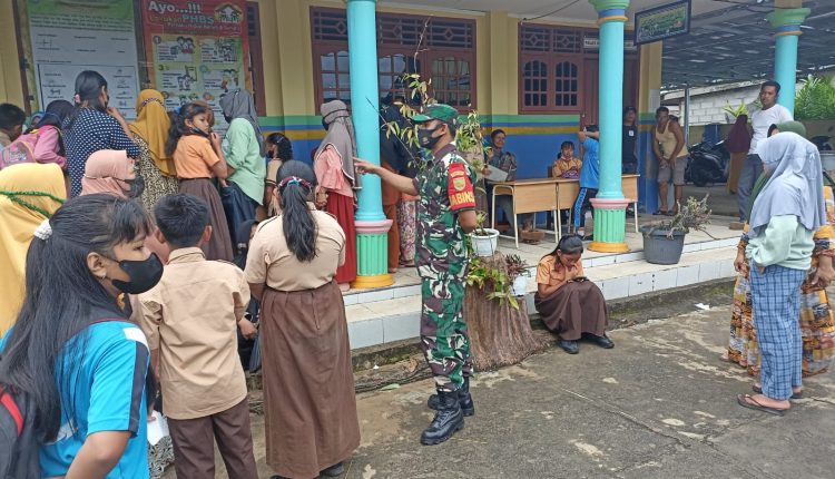 Babinsa Koramil 431-01/Jebus Melaksanakan Pendampingan Vaksinasi di SDN 8 Parittiga