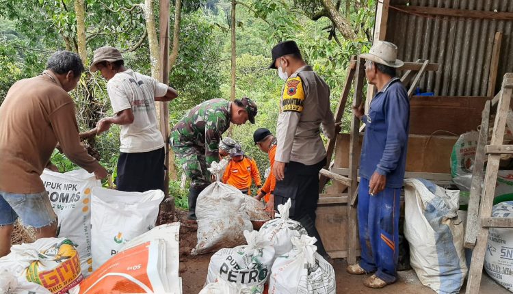 Dengan kondisi tersebut, personel Polsek dawe dan Koramil Dawe bersama warga bersama-sama melaksanakan kerja bakti membersihkan material tanah dan batu longsoran.