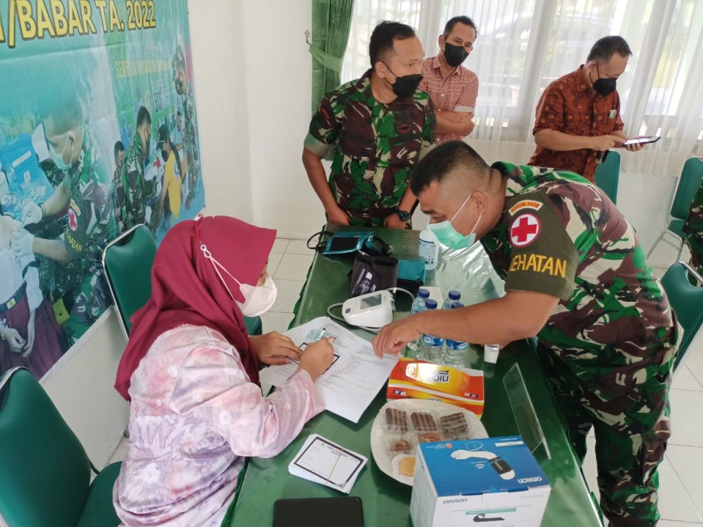 Pelaksanaan vaksinasi booster kepada para personel di jajaran kodim di tinjau langsung oleh Komandan Kodim 0431/Babar Letkol Inf Deri Indrawan.