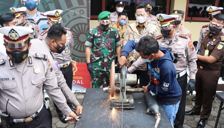 Dirlantas Polda Jawa Tengah Pimpin Musnahkan Knalpot Brong Di Halaman Mapolres Kendal